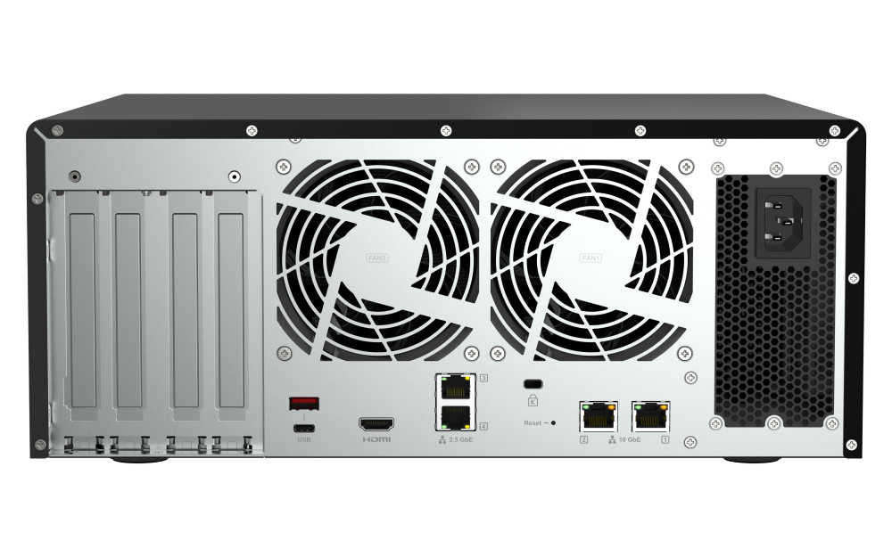 System Log & Notification Center Log recording: 3,000 event per second Smart Fan Schedule on/off Internet protocol IPv4, IPv6 Virtual Switch Port trunking , (7 modes) VLAN DHCP Server DDNS (Dynamic Domain Name Service) Network access protection with auto-blocking SSH, Telnet, HTTP(S), FTP, CIFS/SMB, and AFP Security Counselor Malware Remover AES 256-bit Folder Encryption validated by FIPS 140-2 CAVP 2-step verification Allow/Deny List Access Protection Service binding Firewall vSphere Web Client Plug-in VMware vSphere VAAI for iSCSI VMware vSphere VAAI for NAS Windows ODX Windows/VMware Snapshot Agent HTTP/HTTPS Connections TLS 1.0/1.1/1.2/1.3 Supports WebDAV Connection Supports Virtual Hosts 32 Qsync Note: At least 1 GB RAM is required. [Qsync] Management Mode User customization, Central [Qsync] Qsync client supported platforms Windows, macOS, Ubuntu, Android, and iOS [Qsync] Maximum number of version control 64 HybridMount Note: At least 1 GB RAM is required. [HybridMount] File Cloud Gateway Concurrent Connections = 80 Upload & 80 Download [HybridMount] Network Drive Mount [HybridMount] Free cloud gateway sessions 2 HBS (Hybrid Backup Sync) Note: At least 1 GB RAM is required. [HBS (Hybrid Backup Sync)] NAS to NAS backup [HBS (Hybrid Backup Sync)] Cloud Backup [HBS (Hybrid Backup Sync)] Cloud Sync [HBS (Hybrid Backup Sync)] 2-way and Active Sync [HBS (Hybrid Backup Sync)] Backup Deduplication [HBS (Hybrid Backup Sync)] Apple Time Machine Backup [HBS (Hybrid Backup Sync)] External drive backup [HBS (Hybrid Backup Sync)] Maximum number of backup job 400 Hyper Data Protector Boxafe Note: At least 4 GB RAM is required. [Boxafe] Office 365 Backup [Boxafe] Google Workspace Backup [Boxafe] Full-text search Qsirch Note: This feature is supported by all QNAP NAS devices with at least 2 GB of memory [Qsirch] Previews Photos, music, videos, PDFs, Gmail, and others [Qsirch] Integrate Mac Finder [Qsirch] Advanced picture search [Qsirch] Search filters QuMagie Note: At least 1 GB RAM is required. [QuMagie] Browse photos [QuMagie] Virtual and smart albums [QuMagie] AI-assisted photo management People, things, places, and others Antivirus (free) McAfee (License) QVPN Service Note: At least 1 GB RAM is required. [QVPN Service] Remote Access PPTP, L2TP/IPSec, OpenVPN, QBelt (QNAP proprietary) [QVPN Service] Supportedd utility and mobile app Windows, macOS, iOS, and Android [QVPN Service] Supported maximum clients 100 HD Station LDAP Server RADIUS SQL server License Center Multimedia Console Photo Station Music Station Video Station Download Station Notes Station Qfiling Media Streaming add-on QmailAgent QuWAN DA Driver Analyzer Q'center Note: The application is available in the App Center and in virtual appliance marketplaces (VMware vSphere ESXi and Microsoft Hyper-V). Q'center Server Q'center Agent Connect to Q'center Virtualization Station Note: At least 4 GB RAM is required. [Virtualization Station] Supports Virtual machine instances Windows, Linux, Unix, and Android [Virtualization Station] VM importing, exporting, cloning, snapshot capturing, backup, and restoration All function is Fine. [Virtualization Station] Virtual switches Can create a virtual switch [Virtualization Station] GPU pass-through GPU function is fine [Virtualization Station] Suggested number of virtual machine instances 16 The actual number of virtual machine instances may vary by the memory installed on NAS (e.g. 1 VM= 1 thread for 1 vCPU and 1GB memory). Please expend memory if needed. Container Station Note: At least 1 GB RAM is required. [Container Station] Supported type LXC/LXD and Docker Note: LXD has been supported after Container Station 2.4 [Container Station] Docker Hub Registry [Container Station] Container importing and exporting [Container Station] Console mode Linux Station Notification: At least 4 GB RAM is required. [Linux Station] Supports Ubuntu versions 16.04, 18.04, and 20.04 Linux Station Center QVR Elite Note: At least 1 GB RAM is required. The maximum number of channels supported varies by NAS model, network configuration, and camera settings. For more information, visit https://www.qnap.com.cn/go/qvr-nas-selector. [QVR Elite] Recording Technique Standard MP4 file based [QVR Elite] License Type Subscription-based [QVR Elite] User-defined trigger events [QVR Elite] QVR Pro Client (Desktop) Windows, macOS, and QNAP HybridDesk Station [QVR Elite] QVR Pro Client (Mobile) Android and iOS [QVR Elite] Recording camera streams H.264 [QVR Elite] Free built-in camera channels 2 [QVR Elite] Expandable camera channels Developing QVR Center Note: At least 4 GB RAM is required. [QVR Center] Log management [QVR Center] Central monitoring across multiple servers