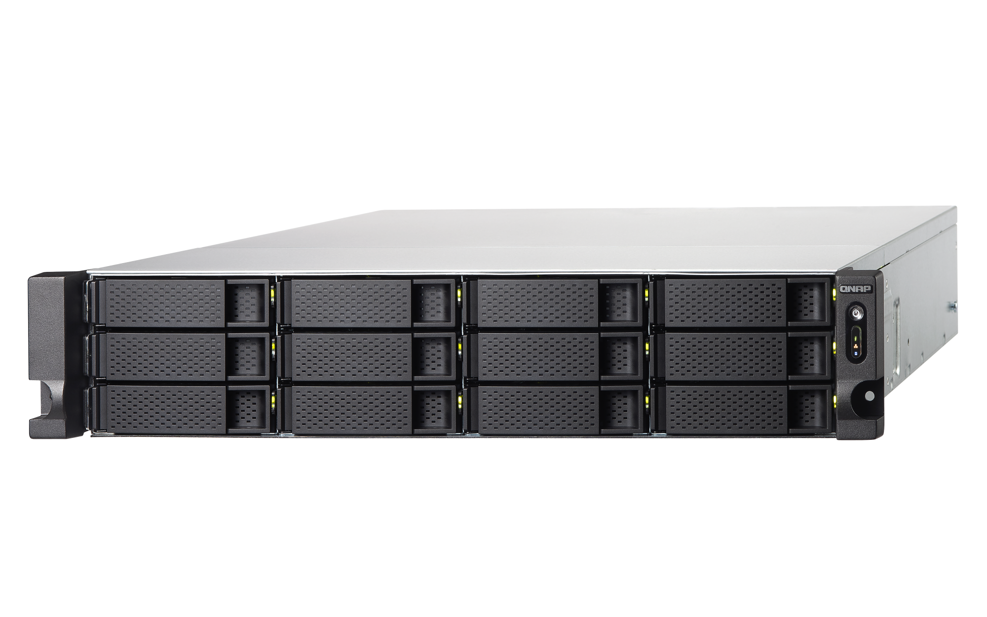 4 x Type-A USB 3.2 Gen 2 10GbpsHDMI™ 输出 1, HDMI™ 2.0 (up to 3840 x 2160 @ 60Hz) 外形规格 2U 机架式 LED 指示灯 HDD 1-12、状态、局域网、存储扩展端口状态 按钮 电源、系统重置 尺寸(高 x 宽 x 深) 88.3 × 482 × 562 mm 净重 12.25 kg 毛重 15.85 kg 工作温度 0 - 40°C (32°F - 104°F) 存储温度 -20 - 70 °C (-4°F - 158°F) 相对湿度 5-95% RH (不凝结),湿球:27˚C (80.6˚F) 电源单元 300W (x2), 100 - 240V 功耗:典型工作模式 105.37 W 使用满载 WD10EFRX 硬盘测试。风扇 系统风扇:2 x 60mm,12VDC 系统警告 蜂鸣器 标准保修 3 较大并发连接数(CIFS)- 配备内存上限 2500 注意:请仅使用 QNAP 内存模块来保持系统的性能与稳定性。若 NAS 设备有多个内存模块,请使用规格相同的 QNAP 模块,并参考硬件用户手册安装兼容的 QNAP 内存模块。