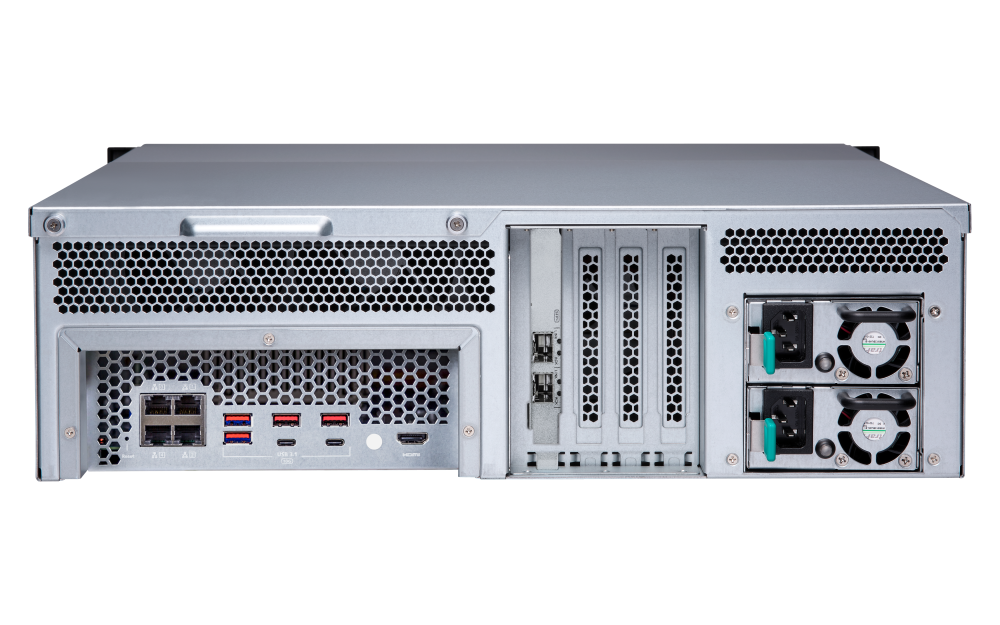 4 x Type-A USB 3.2 Gen 2 10GbpsHDMI™ 输出 1,HDMI™ 2.0 (可高达 3840 x 2160 @ 60Hz) 外型 3U 机架式 LED 指示灯 HDD 1-16、状态、网络、存储空间扩充端口状态 按钮 电源、系统重置 尺寸 (高 x 宽 x 深) 130 × 481 × 573.5 mm 重量 (净重) 15.35 kg 重量 (总重) 21.79 kg 操作温度 0 - 40°C (32°F - 104°F) 存储温度 -20 - 70 °C (-4°F - 158°F) 相对湿度 5-95% RH (不凝结),湿球:27˚C (80.6˚F) 电源供应器 500W (x2),100-240V 耗电量:运作模式,一般 126.33 W 通过 WD10EFRX 硬盘满载测试。风扇 系统风扇:4 x 92mm,12VDC 系统警示 蜂鸣器 标准保固 3 同时联机 (CIFS) 数目上限-内存上限 2500 注意:请仅使用 QNAP 内存模块来保持系统的性能与稳定性。若 NAS 设备有多个内存模块,请使用规格相同的 QNAP 模块,并参考硬件用户手册安装兼容的 QNAP 内存模块。