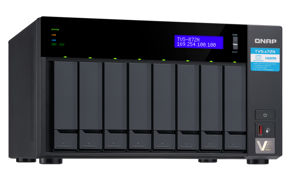 2 x Type-A USB 3.2 Gen 2 10Gbps红外线 (IR) 接收器 (QNAP RM-IR004 和 MCE) HDMI™ 输出 1,HDMI™ 2.0 (可高达 3840 x 2160 @ 60Hz) 音讯输入 1 x 3.5mm 麦克风输入插孔 音讯输出 1 x 内置喇叭,1 x 3.5mm 输出插孔 (供放大器或喇叭使用) 外型 直立式 LED 指示灯 HDD 1-8、状态、网络、USB 端口、M.2 埠 LCD 显示器/按钮 按钮 电源、系统重置、USB 复制 尺寸 (高 x 宽 x 深) 188.2 × 329.3 × 279.6 mm 重量 (净重) 7.06 kg 重量 (总重) 9.19 kg 操作温度 0 - 40°C (32°F - 104°F) 存储温度 -20 - 70 °C (-4°F - 158°F) 相对湿度 5-95% RH (不凝结),湿球:27˚C (80.6˚F) 电源供应器 250W,100-240V Power Consumption: Disk Standby Mode 41.47 W 耗电量:运作模式,一般 65.03 W 通过 WD10EFRX 硬盘满载测试。风扇 系统风扇:2 x 120mm,12VDC