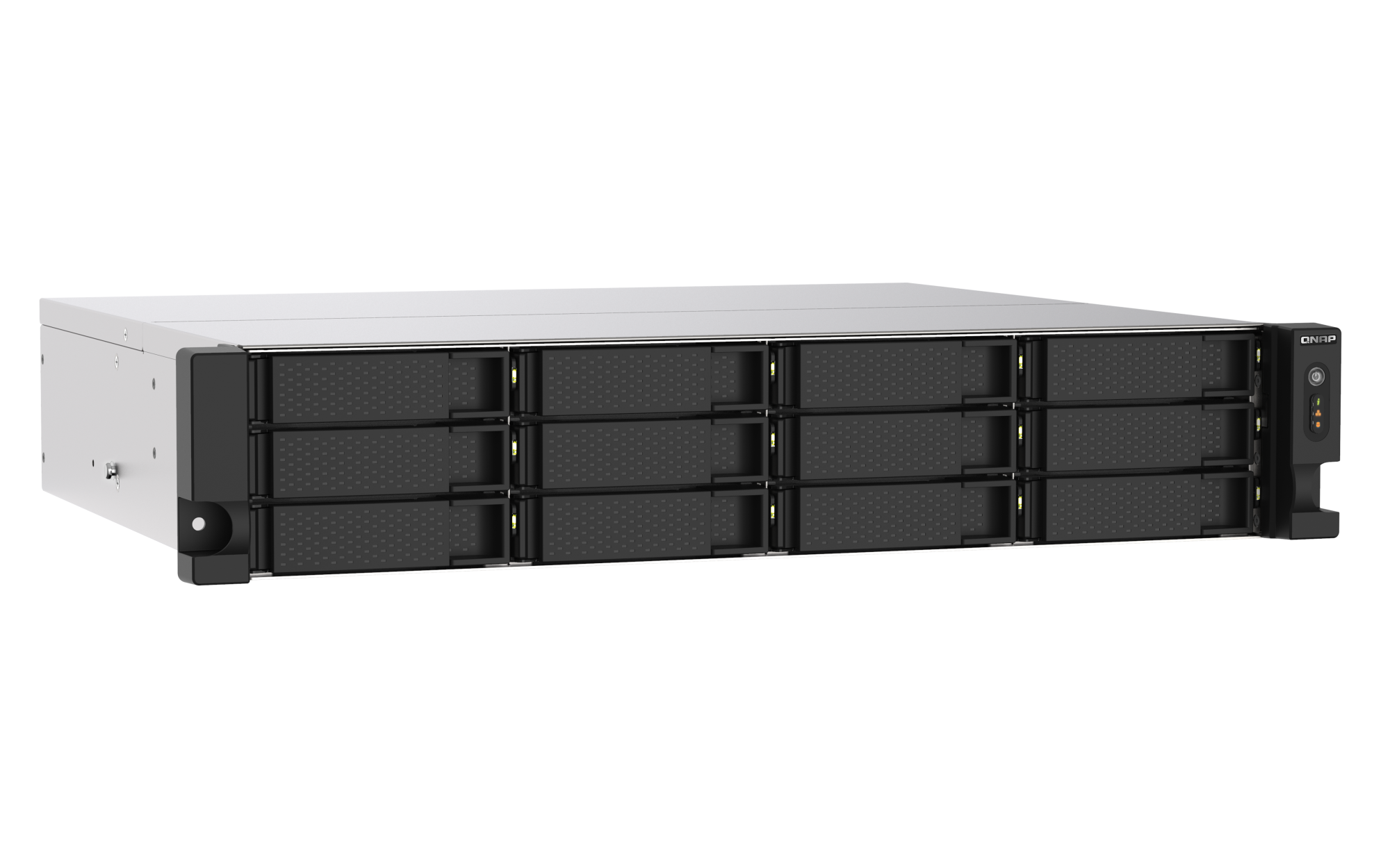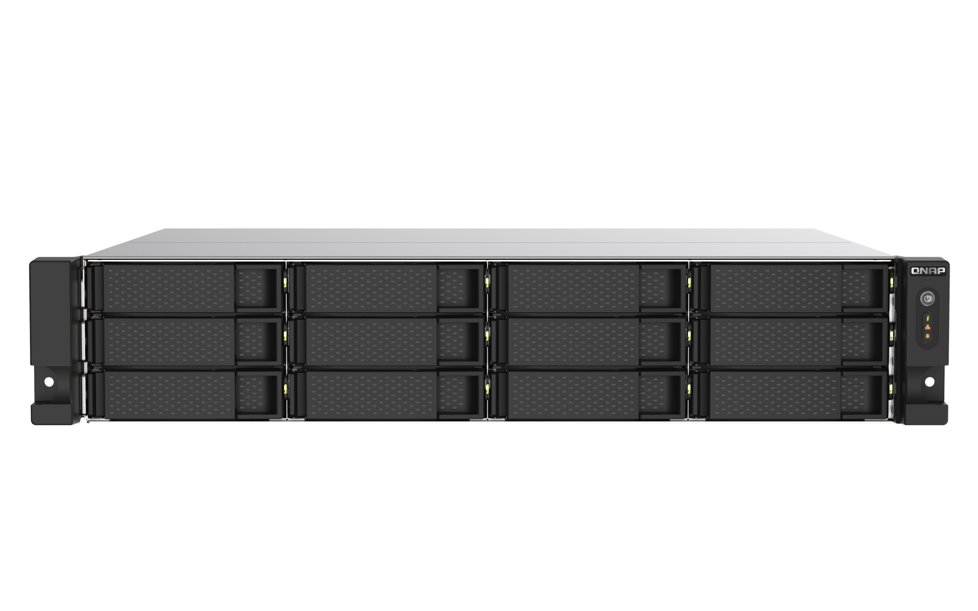 PCIe Gen 3 x4USB 3.2 Gen 1 端口 2 USB 3.2 Gen 2 (10Gbps) 端口 2 x Type-C USB 3.2 Gen 2 10Gbps HDMI™ 输出 1, HDMI™ 2.0 (up to 3840 x 2160 @ 60Hz) 外形规格 2U 机架式 LED 指示灯 HDD 1-12、状态、局域网、存储扩展端口状态 按钮 电源、系统重置 尺寸(高 x 宽 x 深) 88.65 × 482.18 × 423.78 mm 工作温度 0 - 40°C (32°F - 104°F) 存储温度 -20 - 70 °C (-4°F - 158°F) 相对湿度 5-95% RH (不凝结),湿球:27˚C (80.6˚F) 电源单元 300W PSU(x2),100 - 240V 风扇 2 x 80mm,12VDC 系统警告 蜂鸣器 较大并发连接数(CIFS)- 配备内存上限 2000 注意:请仅使用 QNAP 内存模块来保持系统的性能与稳定性。若 NAS 设备有多个内存模块,请使用规格相同的 QNAP 模块,并参考硬件用户手册安装兼容的 QNAP 内存模块。