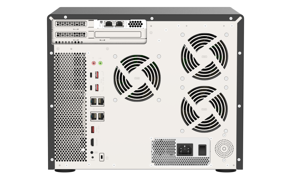 2.5 吋 SATA 固态硬盘热插入支持 (不支持 M.2 SSD) M.2 插槽 2 x M.2 22110/2280 NVMe PCIe Gen3 x4 插槽 兼容 PCIe Gen 3 以上的 NVMe SSD。请查询兼容性清单 https://www.qnap.com.cn/compatibility/。SSD 快取加速支持 GPU 直通 2.5 Gigabit 以太网络端口 (2.5G/1G/100M) 4(2.5G/1G/100M/10M) 5 Gigabit 以太网络端口 (5G/2.5G/1G/100M) 可选购适配卡 10 Gigabit 以太网络端口 2 x 10GBASE-T (10G/1G) 25 Gigabit 以太网络端口 可选购适配卡 网络唤醒 (WOL) 仅支持 2.5GbE 端口巨型讯框 Thunderbolt 端口 可选购 QXP-T32P 双埠 Thunderbolt 3 PCIe 适配卡 仅支持 Thunderbolt 连接用于Windows和Mac主机及USB存储设备。不支持第三方 Thunderbolt 外部存储设备。PCIe 插槽 3