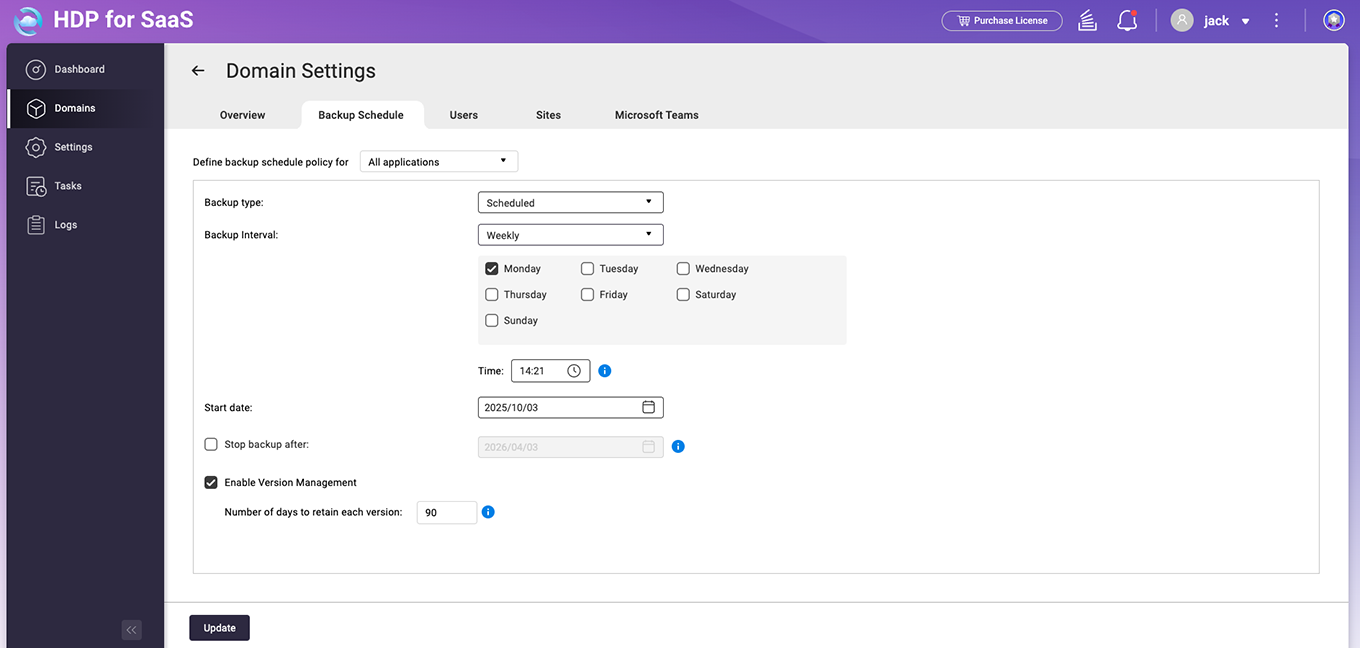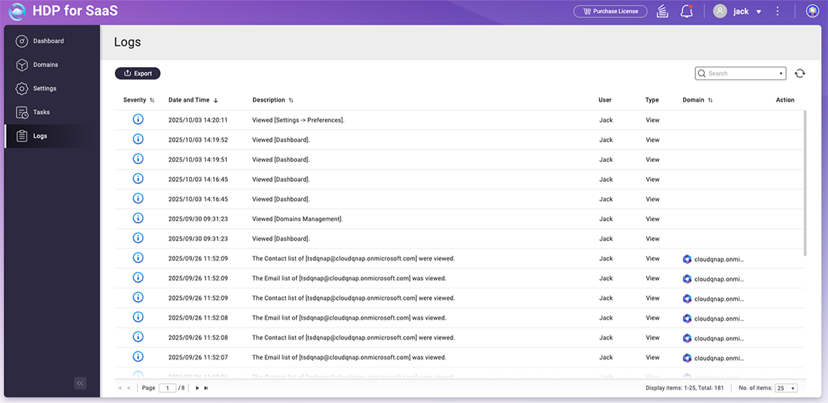 HDP for SaaS 提供企业级 SaaS 数据备份方案,可将 SaaS 数据备份/还原到 QNAP NAS、本地服务器或云端存储空间中。通过集中管理多个网域与账户,确保您的业务安全。