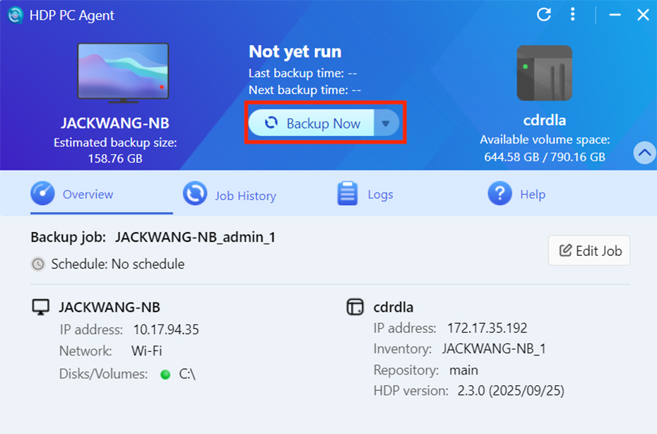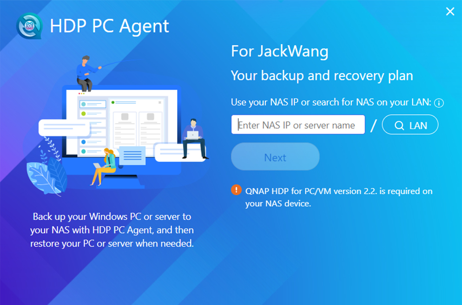 HDP PC Agent 是免费的 Windows® 应用程序,可将重要计算机/服务器数据备份至 QNAP NAS,并在需要时还原数据。