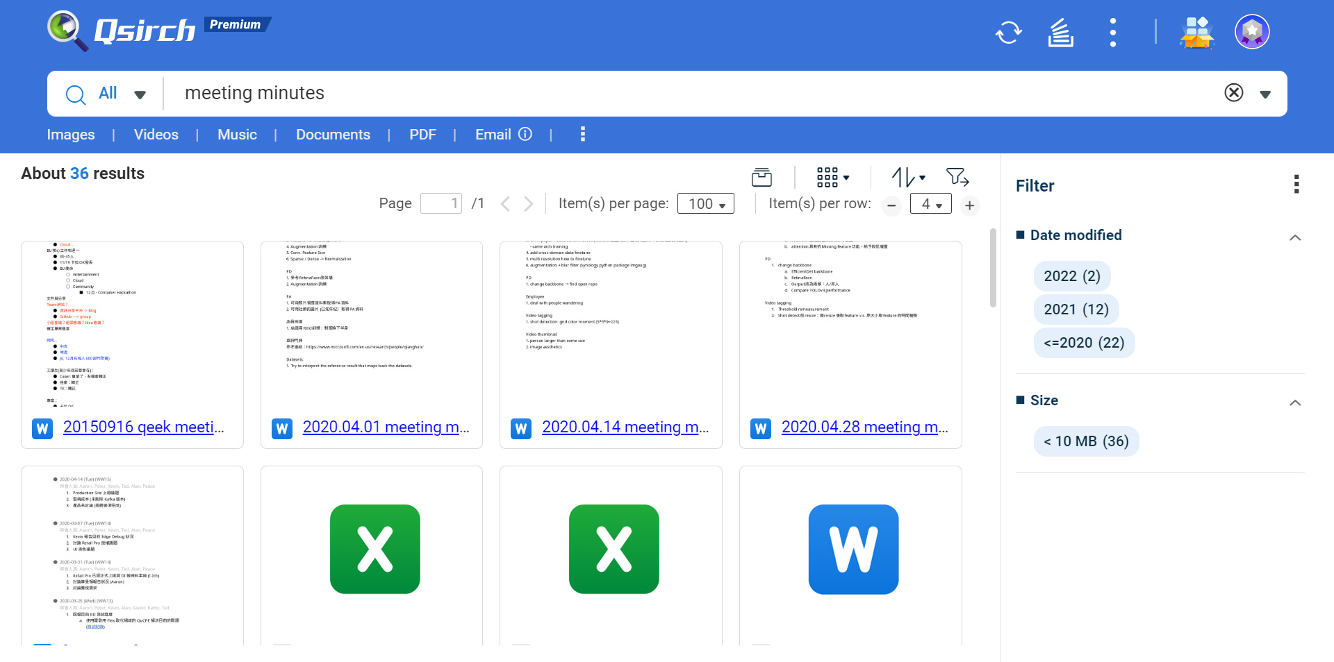 在 QNAP NAS、移动设备、浏览器或计算机上,您都可以享受 Qsirch 文件搜索带来的便利。