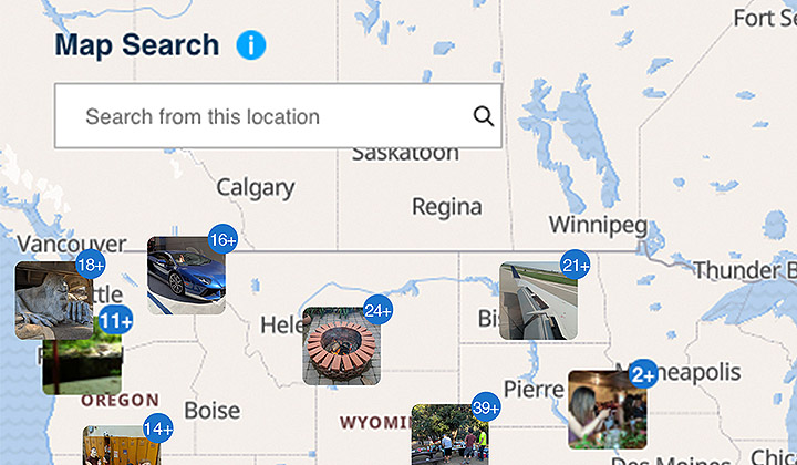 在交互式地图上,搜索特定地点所拍摄的相片。