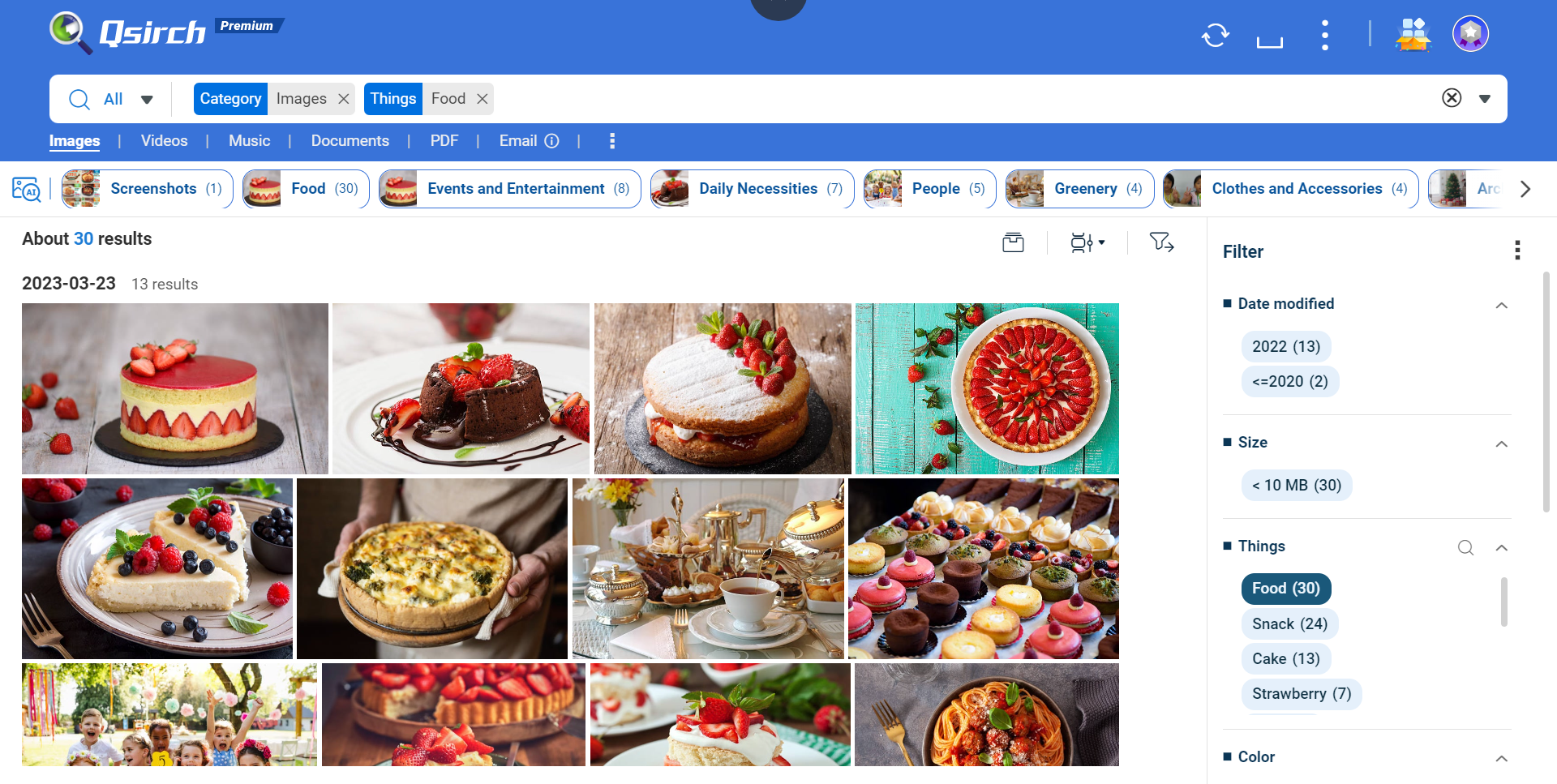 输入关键词,根据文件名、内文、修改日期、文件标题、后设数据 (作者、EXIF、IPTC、XMP 等)、电子邮件标题和内容、数据存储路径等条件,搜索文件与文件。