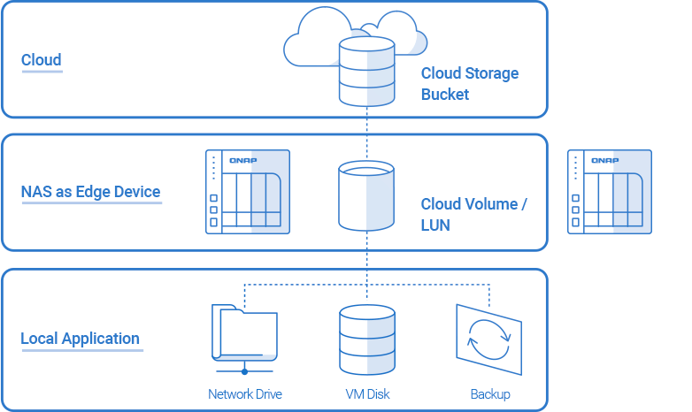 适用情境 | LUN 的数据上云、大型数据库实时云备份 | 活用其他闲置 QNAP NAS 的空间 |