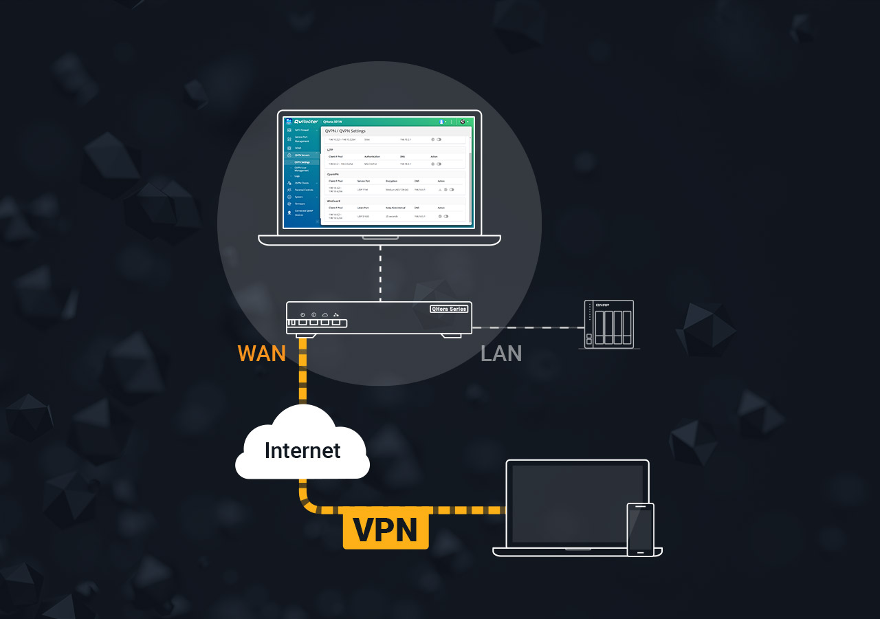 支持 WireGuard®,为大型文件传输提供更快、稳定的 VPN 联机。通过简单易用的接口,非 IT 的专业远距工作者也可轻松设置 VPN 通道,以简化的联机方式安全存取位于办公室的 QNAP 设备。