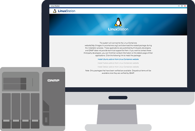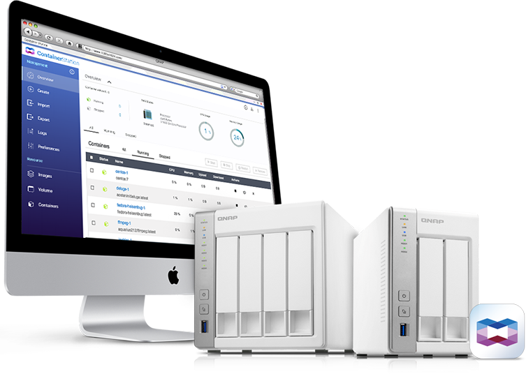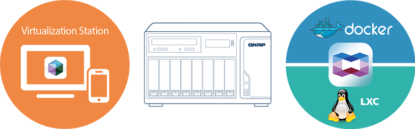QNAP Container Station (软件容器工作站) 支持 LXC 与 Docker 两项轻量级虚拟技术。您可在 QNAP NAS 上执行完整的 Linux 虚拟机,并由 Docker Hub 在线市集下载来自全球各地数以千计的应用程序。