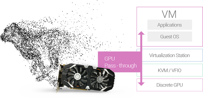 您可弹性扩充图形显示适配器,并将资源分派给虚拟机应用。GPU Passthrough 强化虚拟机显示及运算效能,让应用不仅跑得动,更跑得顺。