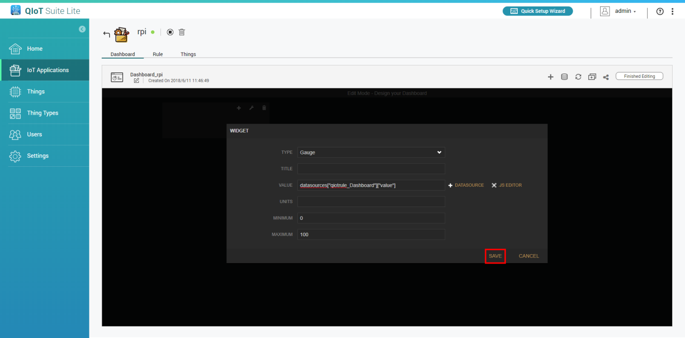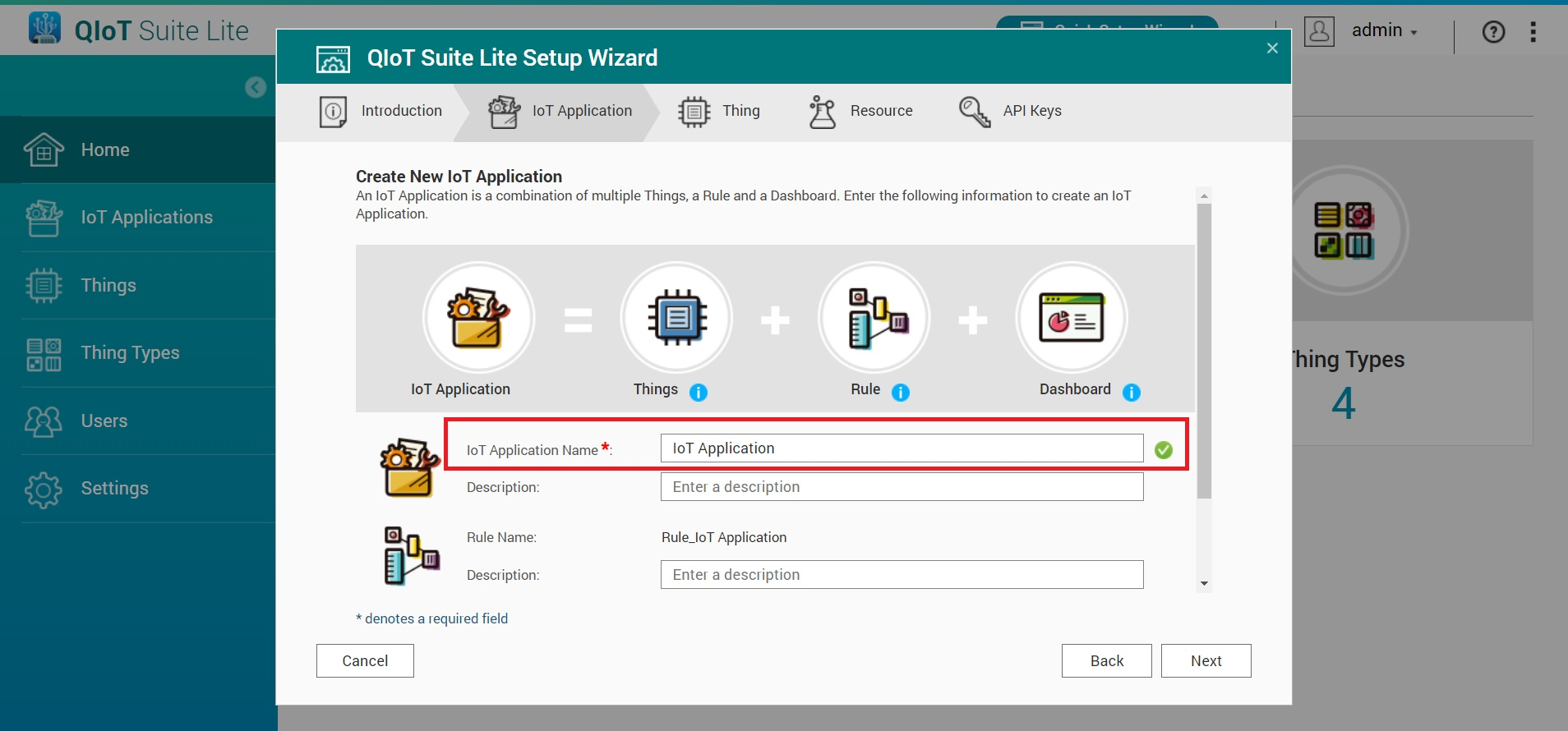 您可以在下面输入 IoT 应用程序名称和描述,并通过仪表板输入规则。
