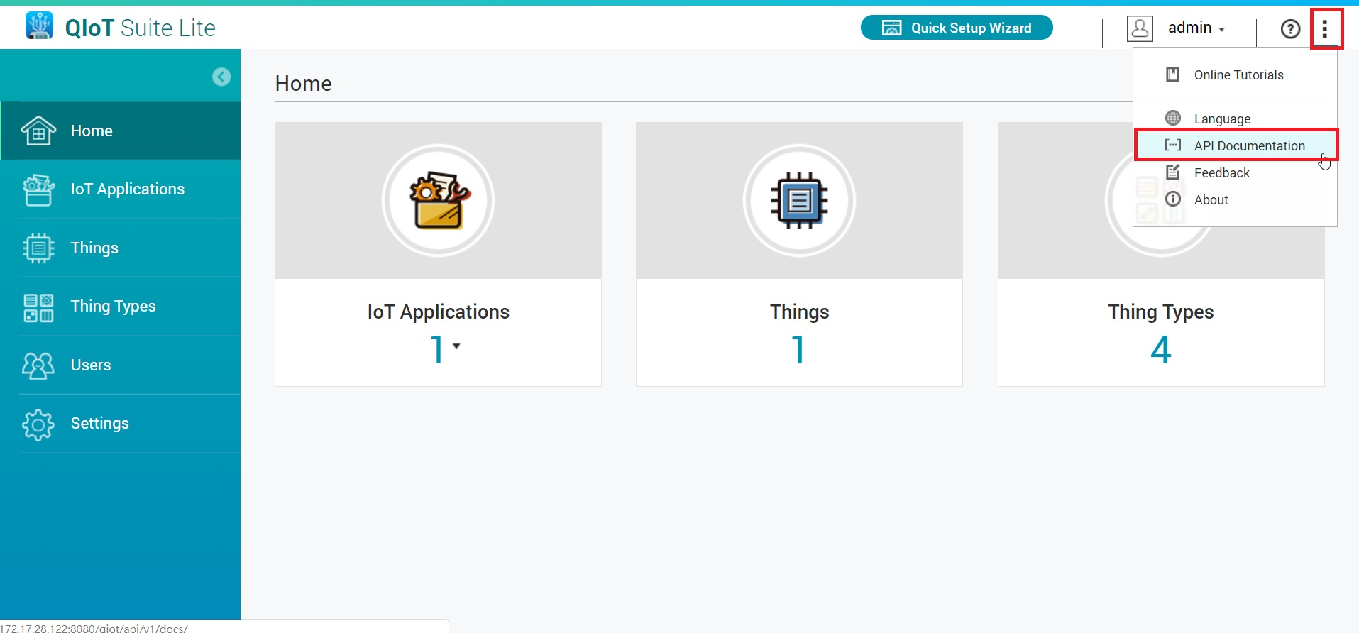 可通过右上角的 API 文件链接找到 QIoT Suite Lite 的 API 文档。