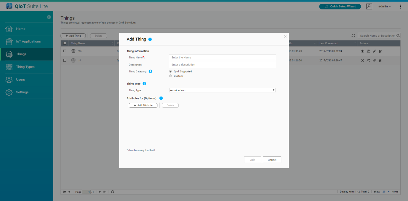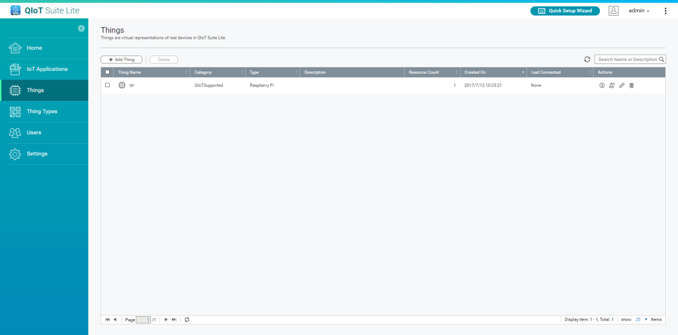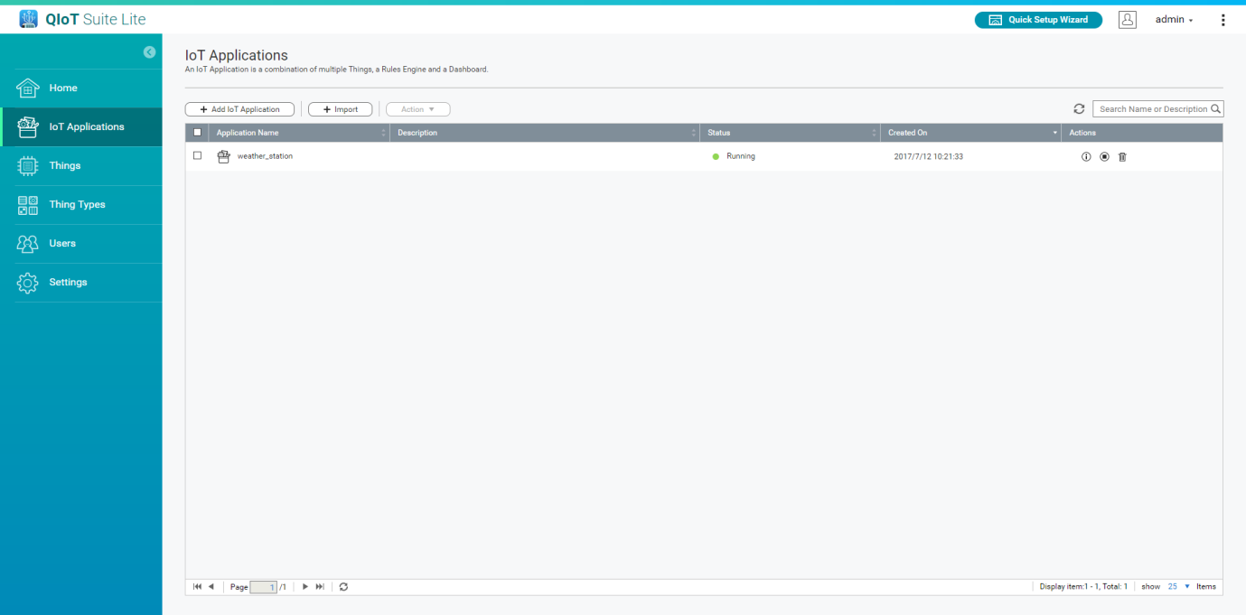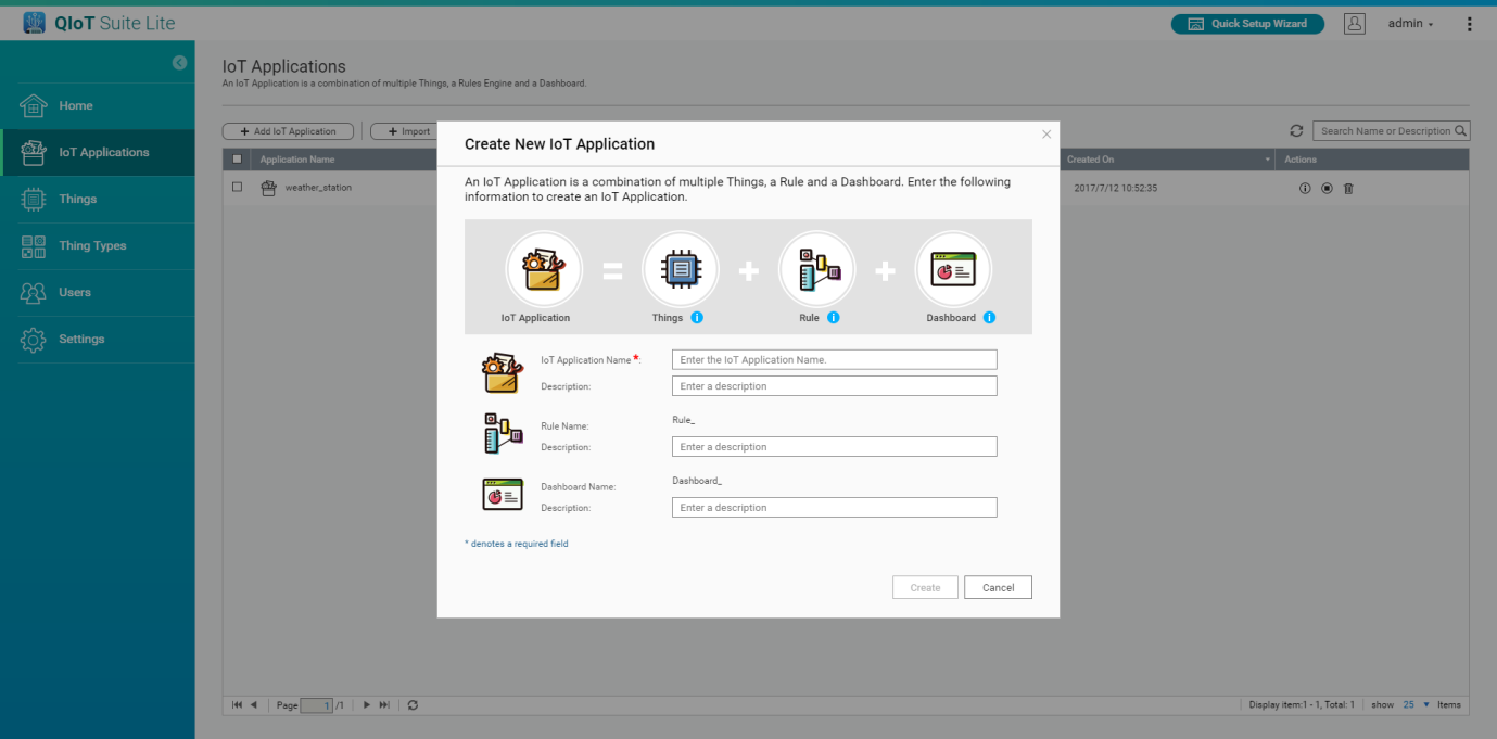 QIoT Suite Lite 是一个完善而实用的 IoT 私有云平台,可帮助您在 QNAP NAS 上构建和管理 IoT 应用程序。