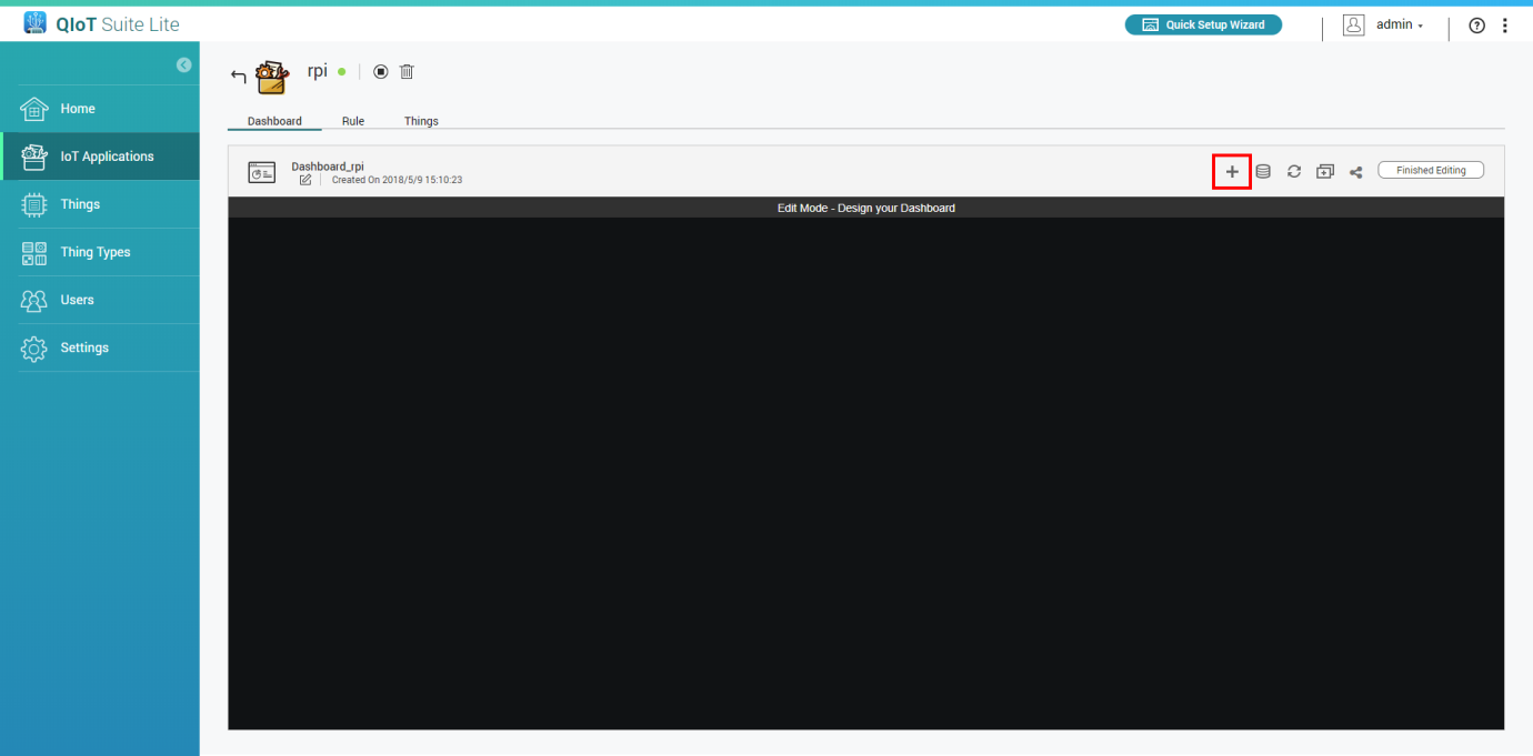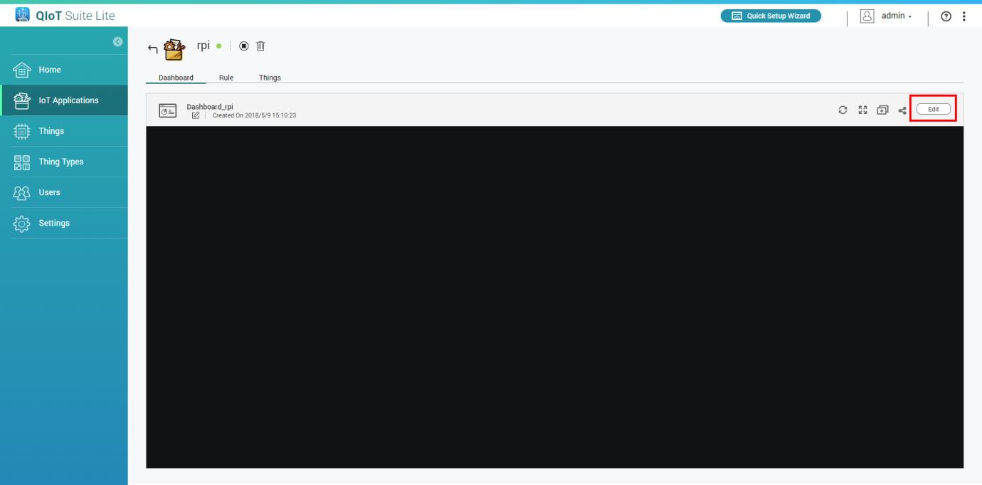 使用“Import”(导入)按钮,可以导入之前创建的 IoT 应用程序(包括 IoT 设备、规则和仪表板)。