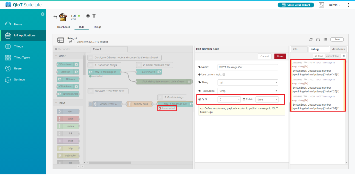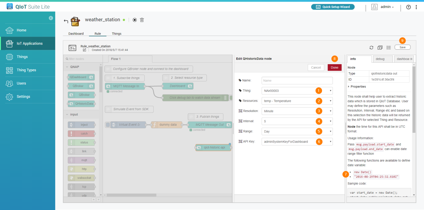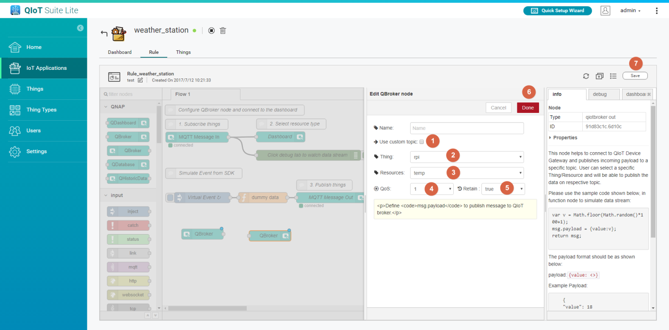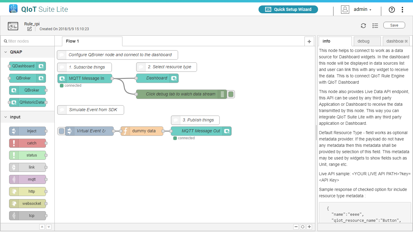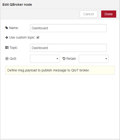 有 4 种自定义 QIoT 节点:QDashboard、QBroker(in)、QBroker(out) 和 QHistoricData。
