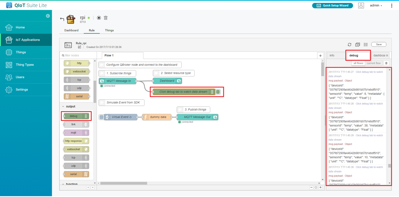可通过两种方法使用 QBroker:从 IoT 设备资源导入数据或从规则引擎导入数据:
