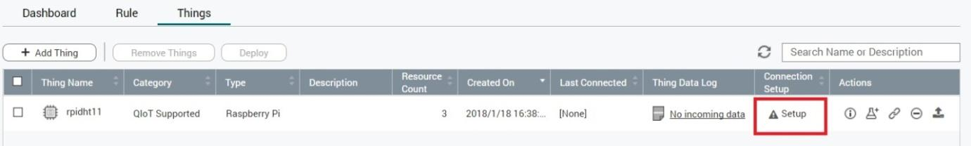 选择要设置的 IoT 设备并单击“Setup”(设置)。