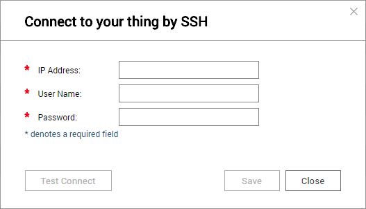 输入 IoT 设备的 IP 地址、“Username”(用户名)和“Password”(密码),然后单击“Connect”(连接)以测试连接。连接成功后,继续进行下一步。