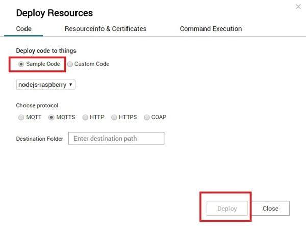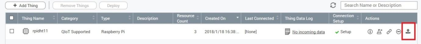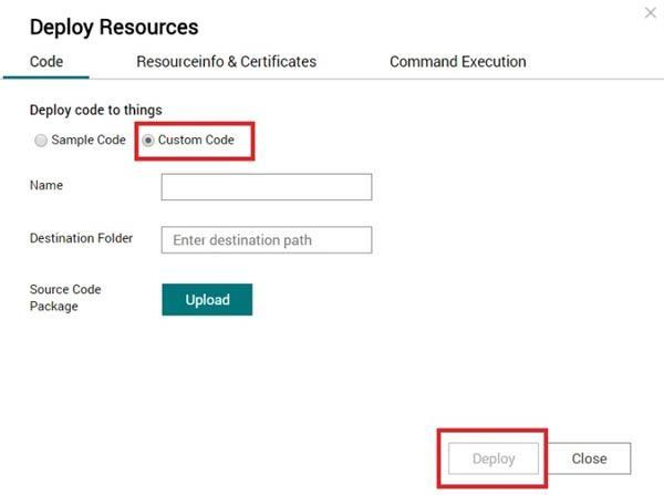 “Source Code Package”(源代码包):上传包含代码的 zip 文件(必须小于 50MB)。将文件上传到 QIoT Suite Lite 并单击部署后,文件必须自动解压缩并上传到设备。