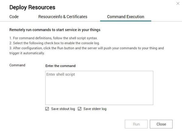 在“Command Execution”(命令执行)中:可以远程运行命令以启动 IoT 设备的服务。命令和记录将保存在主路径(例如:~/bundle)下